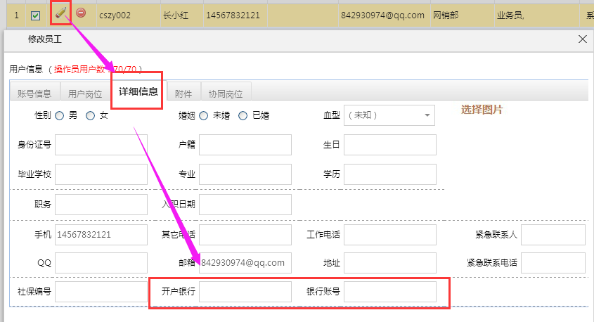 依次點擊:系統(tǒng)設置---部門/用戶---員工管理---修改資料
