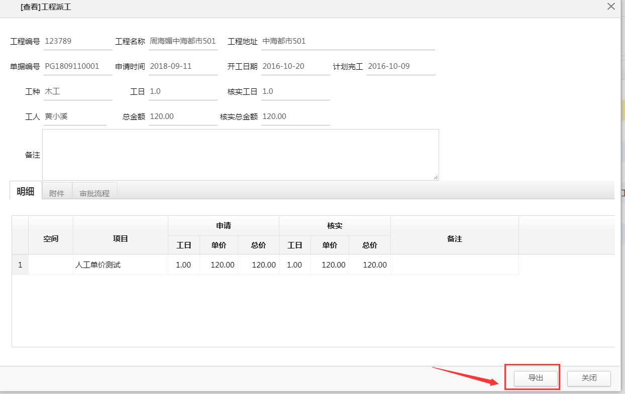 二、工人派工單可直接導(dǎo)出(直接點擊導(dǎo)出即可)