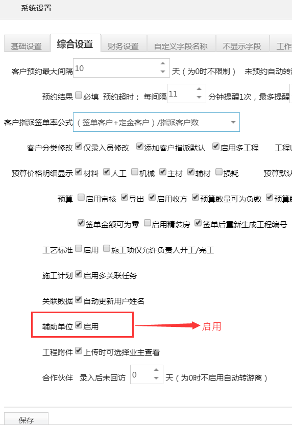 依次點擊:系統(tǒng)設(shè)置--綜合設(shè)置--啟用輔助單位