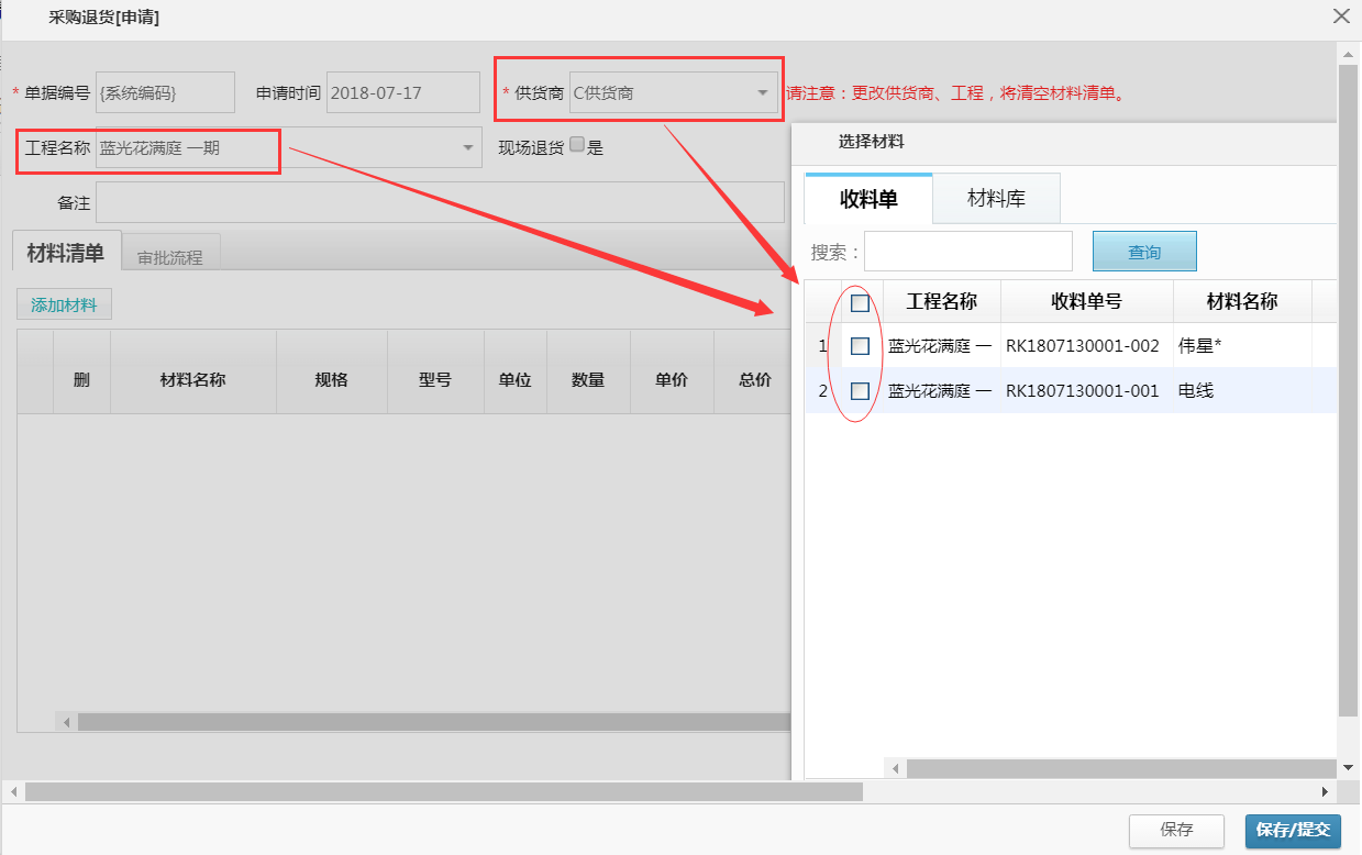 裝修ERP管理軟件---材料管理采購退貨優(yōu)化
