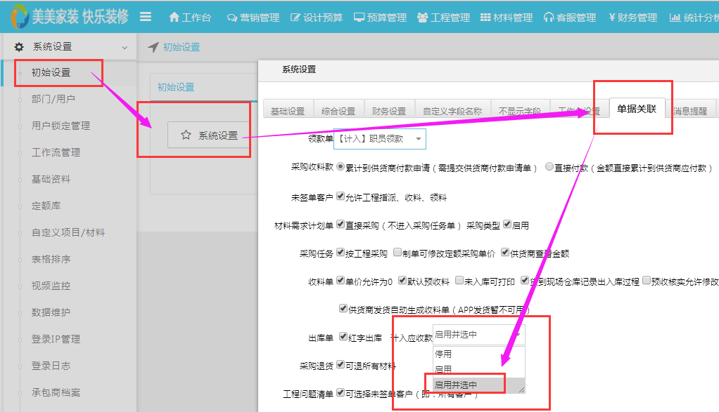 依次點擊:**系統(tǒng)設(shè)置---初始設(shè)置---系統(tǒng)設(shè)置---單據(jù)關(guān)聯(lián)**