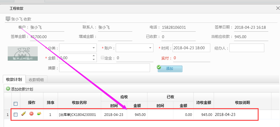 工程收款:計入應(yīng)收款的出庫單流程完成后在,對應(yīng)客戶的工程收款中生成待收款信息
